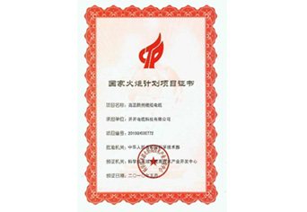 • 國(guó)家火炬計(jì)劃項(xiàng)目證書(shū)
